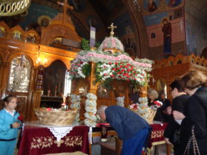Τις πρωϊνές ώρες, τελέστηκε η ακολουθία των Μεγάλων Ωρών και ακολούθως ξεκίνησε το προσκύνημα. Μικροί και μεγάλοι σχημάτιζαν ατελείωτες ουρές περιμένοντας ευλαβικά για να προσκυνήσουν και να προσευχηθούν.