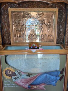 Έπιασε τότε από το χέρι τον υπεύθυνο της Μητρόπολης και έναν Επίτροπο και κρατώντας μία πέτρα τους οδήγησε στον τόπο όπου σήμερα είναι κτισμένη η εκκλησία.