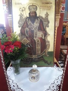 Ο Σεβασμιώτατος υπογράμμισε ότι ο Άγιος Σεραφείμ, ως Επίσκοπος και Αρχιεπίσκοπος, αγωνίστηκε σθεναρά για να διατηρηθεί η χριστιανική πίστη στα δύσκολα χρόνια της τουρκοκρατίας, αντιστεκόμενος στους εξισλαμισμούς και ενισχύοντας το φρόνημα του υπόδουλου λαού μέσα από τα Μυστήρια, τις Θείες Λειτουργίες, τα κηρύγματα και την ποιμαντική του παρουσία.