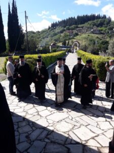 Στάθηκε ιδιαίτερα στον ευλογημένο τόπο όπου βρέθηκαν όλοι μαζί, τον ναό του Αγίου Σεραφείμ, ο οποίος δεν είναι απλώς ένας ιστορικός ή λατρευτικός χώρος, αλλά ο τόπος μαρτυρίου του ίδιου του Αγίου. Επεσήμανε την παρουσία του μικρού παρεκκλησίου, όπου φυλάσσεται η μεγάλη πέτρα που χρησιμοποιήθηκε κατά τον βασανισμό του Αγίου, στοιχείο που δίνει ιδιαίτερη βαρύτητα στο προσκύνημα, καθώς αποτελεί άμεση σύνδεση με την πίστη, την θυσία και την αγάπη προς τον Χριστό και την πατρίδα, που χαρακτήριζαν τον Άγιο.