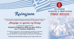 Η εκδήλωση θα πραγματοποιηθεί την Κυριακή, 29 Μαρτίου 2026, στις 12:00 το μεσημέρι, στο 3ο Γυμνάσιο Καρδίτσης.