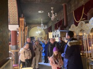 Οι συμμετέχοντες είχαν την ευκαιρία να περιηγηθούν στην ιδιαίτερη αυτή συνοικία της Καρδίτσας, όπου εκτός από τους Δόντα, έζησαν ο ζωγράφος Δημήτρης Γιολδάσης, ο μουσικός Κίτσος Παύλου, ο σκηνογράφος Κώστας Παύλου και τόσοι άλλοι καλλιτέχνες της πόλης. Μοιράστηκαν παιδικές μνήμες,άκουσαν αφηγήσεις και διέκριναν τα λιγοστά -πλέον- απομεινάρια που συνδέουν αυτή την περιοχή με το παρελθόν της. Σταθμοί της διαδρομής ήταν η οικία Δόντα, κληροδότημα της κόρης του Νικολάου, Στέλλας (ⴕ2022), στο Δήμο Καρδίτσας, η οικία Κράγια (1930), ο μύλος Κατσάρη, που εκτός από τον μοναδικό σε λειτουργία, είναι και ο παλαιότερος της πόλης (1882), η μοντερνιστική οικία Καλομέρα, απέναντι από τη Χριστιανική Αγωγή κά. Καταληκτικός σταθμός της διαδρομής ήταν ο ναός της Ευαγγελίστριας με την πρόσφατα συντηρημένη από τον Δ. Νικολή αριστουργηματική εικόνα της Ψηλάφησης του Θωμά, αφιέρωμα των αρτοποιών της πόλης το 1912.
