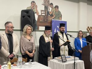 Τη βασιλόπιτα ευλόγησαν ο Αιδεσιμολογιώτατος πατέρας Ηλίας Γώγος και ο πάτερ Νικόλαος Μάλλιος, απευθύνοντας ευχές για υγεία και μια δημιουργική χρονιά σε όλους.