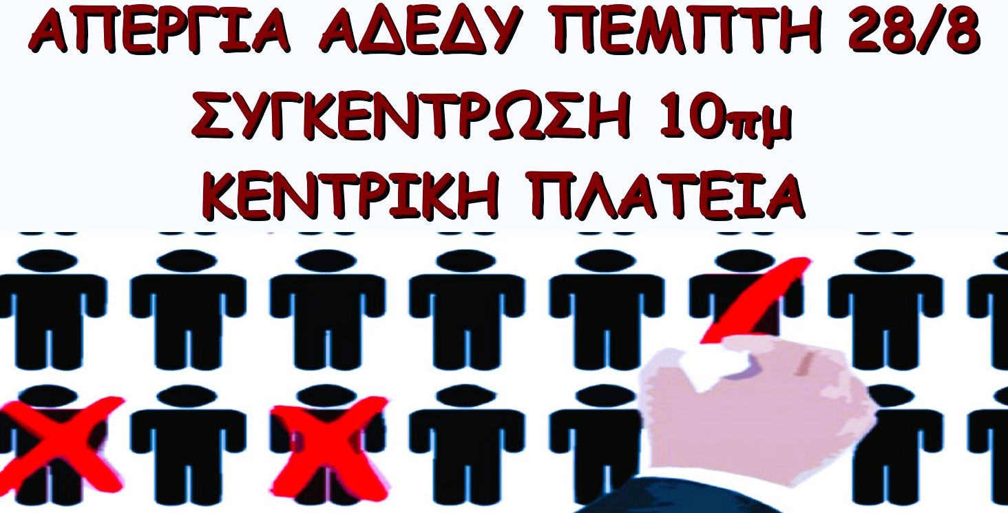 Η επιτυχία της απεργίας της ΑΔΕΔΥ την Πέμπτη 28/8, είναι μια σημαντική μάχη.Οι εκπαιδευτικοί πρέπει να είναι παρόντες στιην ΑΠΕΡΓΙΑΚΗ ΣΥΓΚΡΝΤΡΩΣΗ την Πέμπτη 28/8 στις 10πμ στην κεντρική πλατεία.