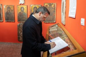 Ο κ. Στεργίου, με τη συνοδεία κατοίκων, αιρετών και συνεργατών, υποδέχθηκε τον κ. Δούκα στην πλατεία του Ανθηρού και είχαν την ευκαιρία να επισκεφθούν στο Εκκλησιαστικό Μουσείο, το οποίο πριν από λίγους μήνες λειτούργησε εκ νέου ύστερα από δεκαετίες.