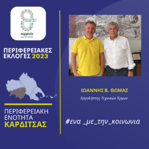 Ο Εργολήπτης Τεχνικών Έργων Ιωάννης Β. Θωμάς υποψήφιος Περιφερειακός Σύμβουλος στην Π.Ε. Καρδίτσας με τον Κώστα Αγοραστό