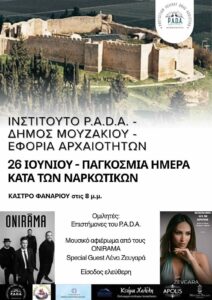Με αφορμή την Παγκόσμια Ημέρα κατά των Ναρκωτικών (26/6) και τη σχετική εκδήλωση που οργανώνεται (την ίδια ημέρα) στο Φανάρι του Δήμου Μουζακίου, ο κ. Ραχωβίτσας θα είναι καλεσμένος στην εκπομπή «Πρωινή Ατζέντα» (καθημερινά 09:00-10:00 το πρωί) με τη Βάσω Μπαλαμπάνη προκειμένου να μας μιλήσεις (στις 09:35) για την εκδήλωση, την Ημέρα αλλά και για να συζητήσουμε για την παραβατικότητα των ανηλίκων.