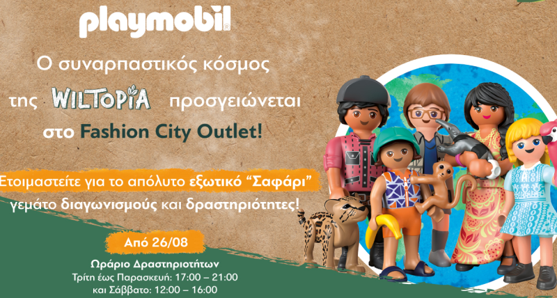 Από σήμερα, Παρασκευή 26 Αυγούστου, το Fashion City Outlet μας ταξιδεύει στον εξωτικό κόσμο του Αμαζονίου και μας καλεί σ’ ένα συναρπαστικό σαφάρι στο τροπικό δάσος του συντροφιά με την οικογένεια Palmer της PLAYMOBIL Wiltopia.