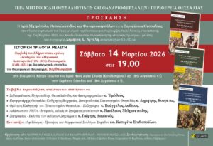 Η ιστορική αυτή τριλογία – μελέτη θα πρωτοπαρουσιασθεί στην Καρδίτσα: