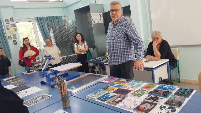Εν συνεχεία επισκέφτηκαν το 4ο ΕΠΑ.Λ. Λάρισας στα πλαίσια των Open Days που διοργάνωνε το συγκεκριμένο σχολείο. Οι μαθητές ξεναγήθηκαν στα εργαστήρια του αντίστοιχου τομέα, παρατήρησαν τον εξοπλισμό και τις εργασίες των μαθητών, και γενικότερα υπήρξε μια εποικοδομητική ζύμωση ανάμεσα σε μαθητές και καθηγητές σχετικά με την οργάνωση και την ανάπτυξη του τομέα Εφαρμοσμένων Τεχνών. Τέλος, κατατέθηκαν διάφοροι προβληματισμοί όπως η σύγκριση των ψηφιακών τεχνολογιών έναντι του χειροποίητου κατά τη σημερινή εποχή αλλά και η δυνατότητα διαδικτυακής συνεργασίας των δύο σχολείων.