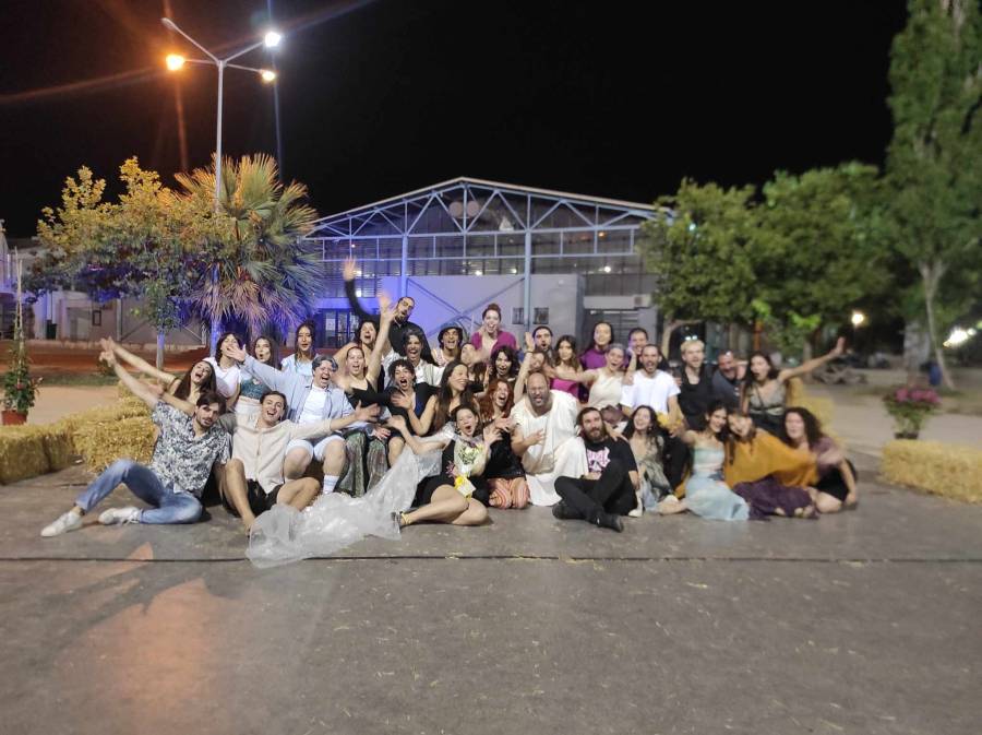 Μύθοι που γνωρίζουμε αλλά και άλλοι, λιγότερο γνωστοί, από την ελληνική και ρωμαϊκή αρχαιότητα, ζωντάνεψαν, ανάμεσα σε τραγούδια και χορογραφίες, στο ιδιαίτερα πρωτότυπο σκηνικό που επιμελήθηκαν η Μαρίνα Κουσερή και ο Γιάννης Γάκης. Ο θίασος, φοιτητές/ριες του πανεπιστημίου Θεσσαλίας και μέλη της θεατρικής ομάδας εδώ και αρκετά χρόνια, κατέφθασαν στην σκηνή με ένα κόκκινο φορτηγό, ξεχύθηκαν και οικειοποιήθηκαν στο έπακρο τον χώρο , επιτελώντας έτσι μια σουρεαλιστική τελετουργία, μια συλλογική επίκληση στο μεταφυσικό, ένα κάλεσμα σε όλους μας να εξερευνήσουμε το μυθικό μας κομμάτι και να τολμήσουμε την αλλαγή, τη μαγεία, τη Μεταμόρφωση.