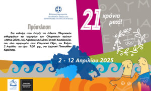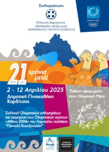 «21 χρόνια μετά! Ολυμπιακά Ενθυμήματα και Τεκμήρια των Ολυμπιακών Αγώνων της Αθήνας 2004». Αυτός είναι ο τίτλος της Έκθεσης, που είναι αφιερωμένη στην Ολυμπιακή Μέρα, και η οποία εκτίθεται στη Δημοτική Πινακοθήκη Καρδίτσας από 2 έως 12 Απριλίου.