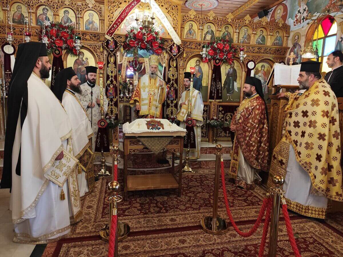 Στο πλαίσιο της πανηγύρεως, ο Σεβασμιώτατος Μητροπολίτης μας χοροστάτησε της ακολουθίας του Όρθρου και τέλεσε τη Θεία Λειτουργία, με τη συμμετοχή πλήθους πιστών.