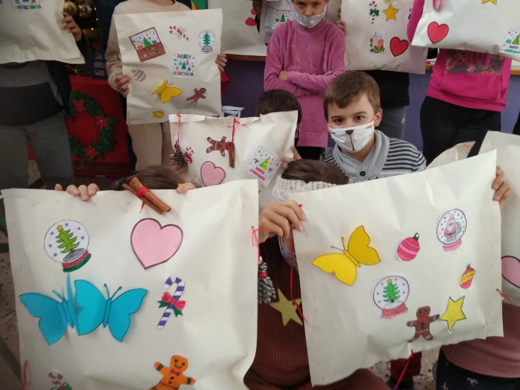 Στη συνέχεια τα παιδιά έφτιαξαν με πολύ μεράκι τα «μαξιλάρια των ονείρων» αποτυπώνοντας πάνω τα σχέδια και τα όνειρα για τη ζωή και το μέλλον τους, που είναι γλυκά και πολύχρωμα, σαν τα Χριστουγεννιάτικα στολίδια!!!