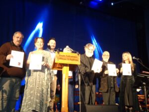 3) Στη Θεατρική Ομάδα «Η ΘΕΑΤΡΟΦΡΕΝΕΙΑ» Καλαμαριάς Θεσσαλονίκης που παρουσίασε το έργο «Το σπίτι της Μπερνάρντα Άλμπα» του Φεντερίκο Γκαρθία Λόρκα για το πάθος και την τόλμη να καταπιαστούν με ένα τόσο σπουδαίο κείμενο
