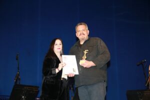 Ο Αντιδήμαρχος Οικονομικών και Πολιτικής Προστασίας του Δήμου Καρδίτσας Σωτήρης Αντωνίου απένειμε στον Δημήτρη Ζερβουδάκη το αναμνηστικό της διοργάνωσης ευχόμενος να είναι πάντα καλά και δημιουργικός.