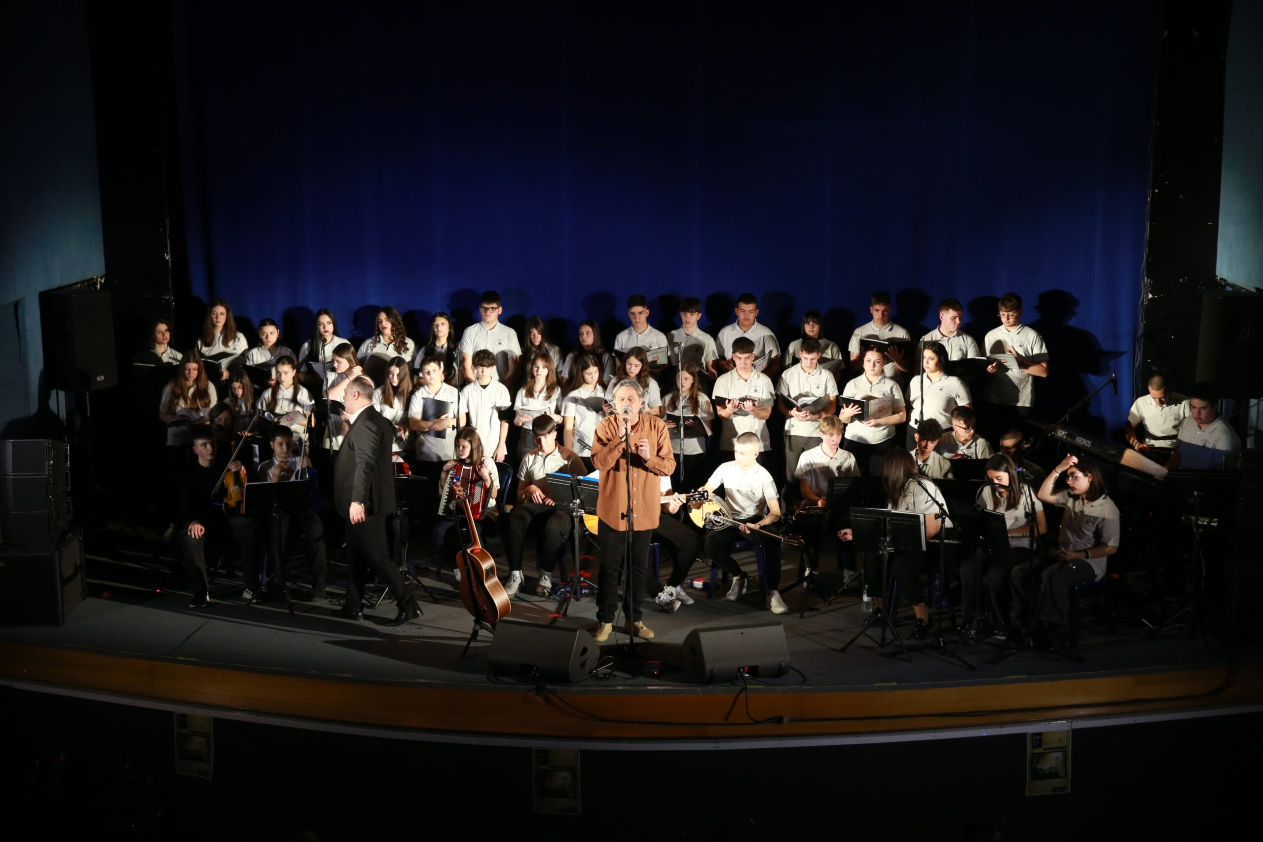 Στο δεύτερο μέρος του προγράμματος, τα παιδιά του Μουσικού Σχολείου Καρδίτσας συνέπραξαν με τον σπουδαίο ερμηνευτή Δημήτρη Ζερβουδάκη.