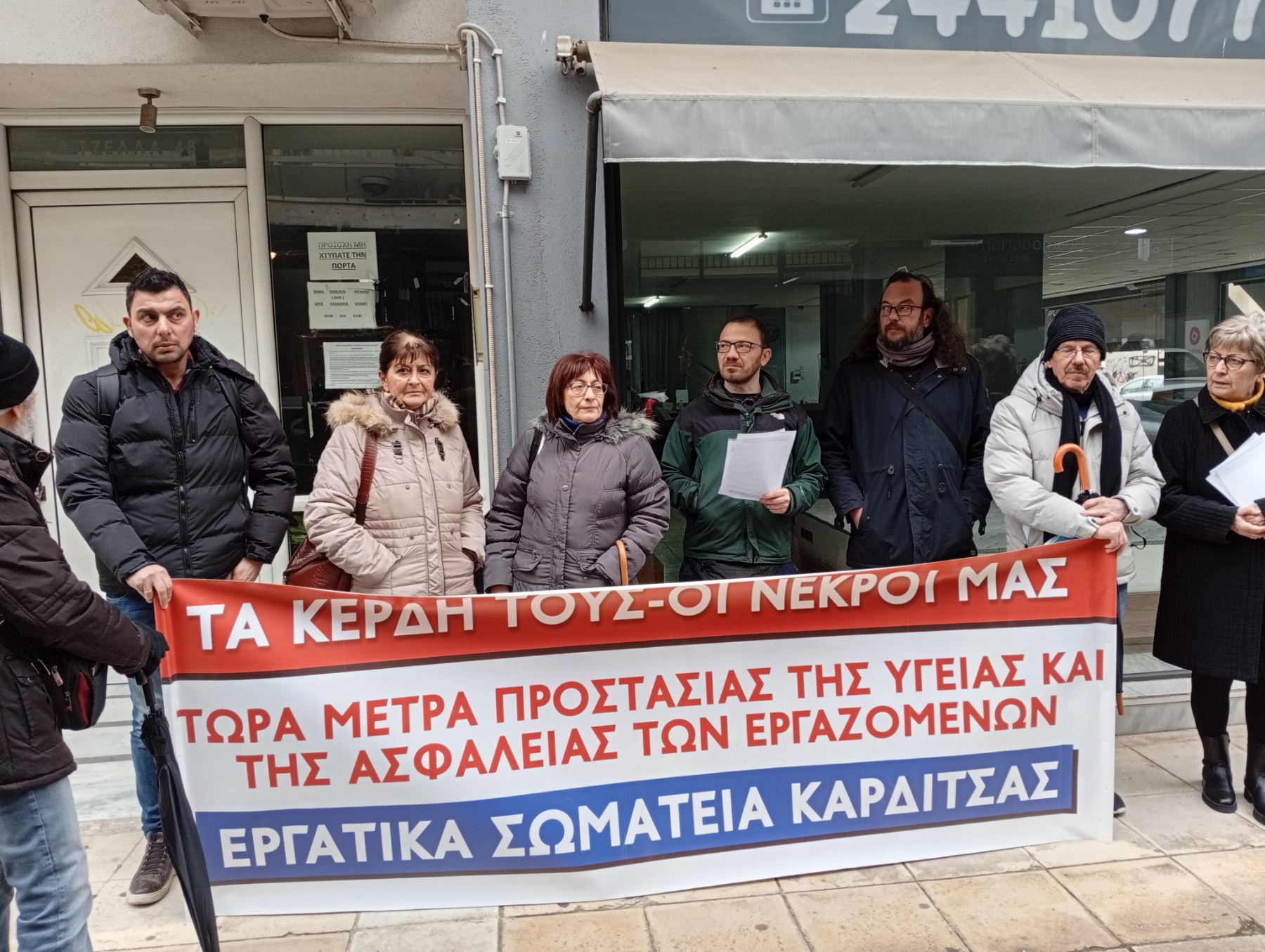 Όπως τόνισε Γιώργος Παπαδόπουλος μέλος του ΔΣ του Εργατικού κέντρου Καρδίτσας: «Οι χώροι δουλειάς έχουν γίνει απέραντη κοιλάδα των Τεμπών με θύματα τους ίδιους τους εργαζόμενους που δουλεύουν για ένα κομμάτι ψωμί χωρίς να υπάρχουν μέτρα προστασίας. Καταγγέλλουμε την στάση της επιθεώρησης εργασίας της Καρδίτσας, που την ίδια μέρα που έγινε το δυστύχημα και ενώ τα εργατικά σωματεία ήταν εκεί και είδαμε ότι η εργοδοσία είχε συγκαλύψει όλα τα στοιχεία που οδήγησαν σε αυτό το τραγικό εργατικό δυστύχημα, απουσίαζαν παντελώς οι υπεύθυνοι για τους ελέγχους. Η παρουσία μας εδώ γίνεται για να καταγγείλουμε τις τραγικές ελλείψεις σε προσωπικό στην υπηρεσία αυτή.»