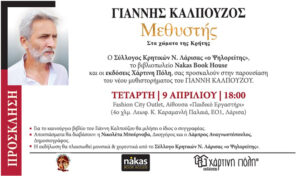 Παρουσίαση βιβλίου Nakas Book House, στο εμπορικό κέντρο Fashion City Outlet, του νέου μυθιστορήματος του Γιάννη Καλπούζου «Μεθυστής-Στα χώματα της Κρήτης»