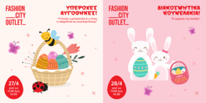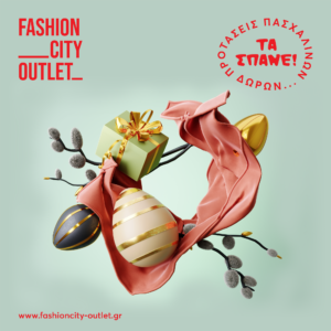 Το Fashion City Outlet μας χαρίζει για τις πασχαλινές μας αγορές, φοβερές επιλογές στις πιο χαμηλές τιμές της αγοράς, ψυχαγωγία, διασκέδαση, άνετο parking και όλα αυτά σε έναν εξαιρετικά στολισμένο χώρο που μυρίζει άνοιξη!