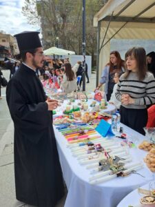 Το πρωί του Σαββάτου του Λαζάρου, 4 Απριλίου 2026, η κεντρική πλατεία της Καρδίτσας γέμισε ζωντάνια και χαρά με την καθιερωμένη ετήσια πασχαλινή εορταγορά του Γραφείου Νεότητας της Ιεράς Μητροπόλεως Θεσσαλιώτιδος και Φαναριοφερσάλων. Στο πλευρό των κατηχητών, τα παιδιά των κατηχητικών σχολείων παρουσίασαν με μεράκι και φαντασία τις χειροτεχνίες τους, δημιουργώντας ένα μοναδικό πασχαλινό κλίμα.