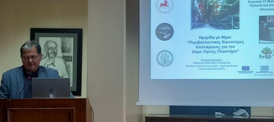 Κεντρικός ομιλητής ήταν ο καθηγητής Δενδροκομίας κ. Αλέξης Παπαχατζής, Πρόεδρος στο Τμήμα Γεωπονίας-Αγροτεχνολογίας του ΠΘ και Διευθυντής του θεσμοθετημένου Εργαστηρίου HortLab, Δενδροκηπευτικών & Εδαφικών Πόρων. Ο καθηγητής παρουσίασε τα αποτελέσματα ενός ερευνητικού προγράμματος και μίλησε για καινοτόμες πρακτικές, όπως είναι η αξιοποίηση της γεωθερμίας, οι θερμοκηπιακές καλλιέργειες, το πέρασμα από την εκτατική καλλιέργεια σε άλλες μορφές. Ο κ. Παπαχατζής παρουσίασε νέες καινοτόμες επιλογές στη διαδικασία συλλογής καρπών οι οποίες μειώνουν το κόστος παραγωγής και αυξάνουν τα έσοδα. Ειδική αναφορά έκαμε στην ανάγκη αναδιάρθρωσης των καλλιεργειών από τους παραγωγούς της περιοχής, εν όψη έλλειψης υδάτινων πόρων και αύξησης της θερμοκρασίας που έρχεται μέσα από την κλιματική κρίση. Αναφέρθηκε διεξοδικά στα είδη δεντροκαλλιέργειας που μπορεί να αναπτυχθούν στις καλλιεργητικές ζώνες του Δήμου Λίμνης Πλαστήρα. Ταυτόχρονα με την παρουσίαση γινόταν τοποθετήσεις των καλλιεργητών και ερωτήσεις, γεγονός που επέτρεψε να γίνει ζωντανός διάλογος και να εξαχθούν χρήσιμα συμπεράσματα.