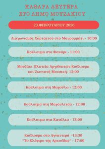 Ο Δήμος Μουζακίου και η Αντιδήμαρχος Πολιτισμού κ.Μαρία Καραμπέκου προσκαλούν όλους τους δημότες και επισκέπτες να συμμετάσχουν στις εκδηλώσεις και να γιορτάσουν τις Απόκριες και την Καθαρά Δευτέρα με παραδοσιακά έθιμα, μουσική, θέατρο και γλέντι.