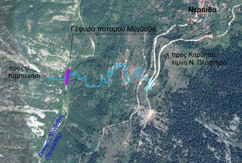 «Η Δ/νση Τεχνικών Έργων Περιφέρεια Θεσσαλίας έχει εκπονήσει μελέτη με αντικείμενο τη γεφύρωση του ποταμού Μέγδοβα στο επαρχιακό οδικό δίκτυο του Νομού Καρδίτσας. Η αρχή του έργου χωροθετείται στην έξοδο του οικισμού Νεράιδας και το πέρας του στην γεφύρωση του ποταμού Μέγδοβα. Το συνολικό μήκος είναι περίπου 8,1 χλμ. Στην παρούσα σύμβαση εξετάστηκε σε επίπεδο οριστικής μελέτης οδός μήκους 1,13 χλμ και συγκεκριμένα στην περιοχή γεφύρωσης του ποταμού Μέγδοβα, ενώ το υπόλοιπο σε επίπεδο προμελέτης .Επίσης αντικείμενο της μελέτης ήταν και η οριστική μελέτη της γέφυρας. Με την Απόφαση 6266/24-12-2018 / ΔΤΕ Περιφέρεια Θεσσαλίας έγινε η έγκριση και η παραλαβή της εν λόγω μελέτης.