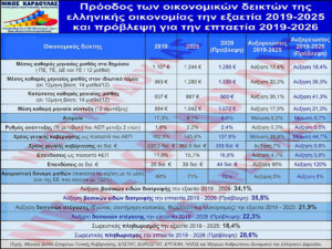 Στον πίνακα φαίνεται η εξέλιξη των 12 οικονομικών δεικτών από το 2019 έως το 2026 καθώς και οι αυξομειώσεις τους.