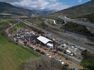 Σε κλίμα οδύνης τελέστηκε το μεσημέρι στον τόπο της τραγωδίας το μνημόσυνο στη μνήμη των 57 θυμάτων του πολύνεκρου σιδηροδρομικού δυστυχήματος των Τεμπών, που διοργάνωσε η Περιφέρεια Θεσσαλία σε συνεργασία με τους γονείς των θυμάτων.