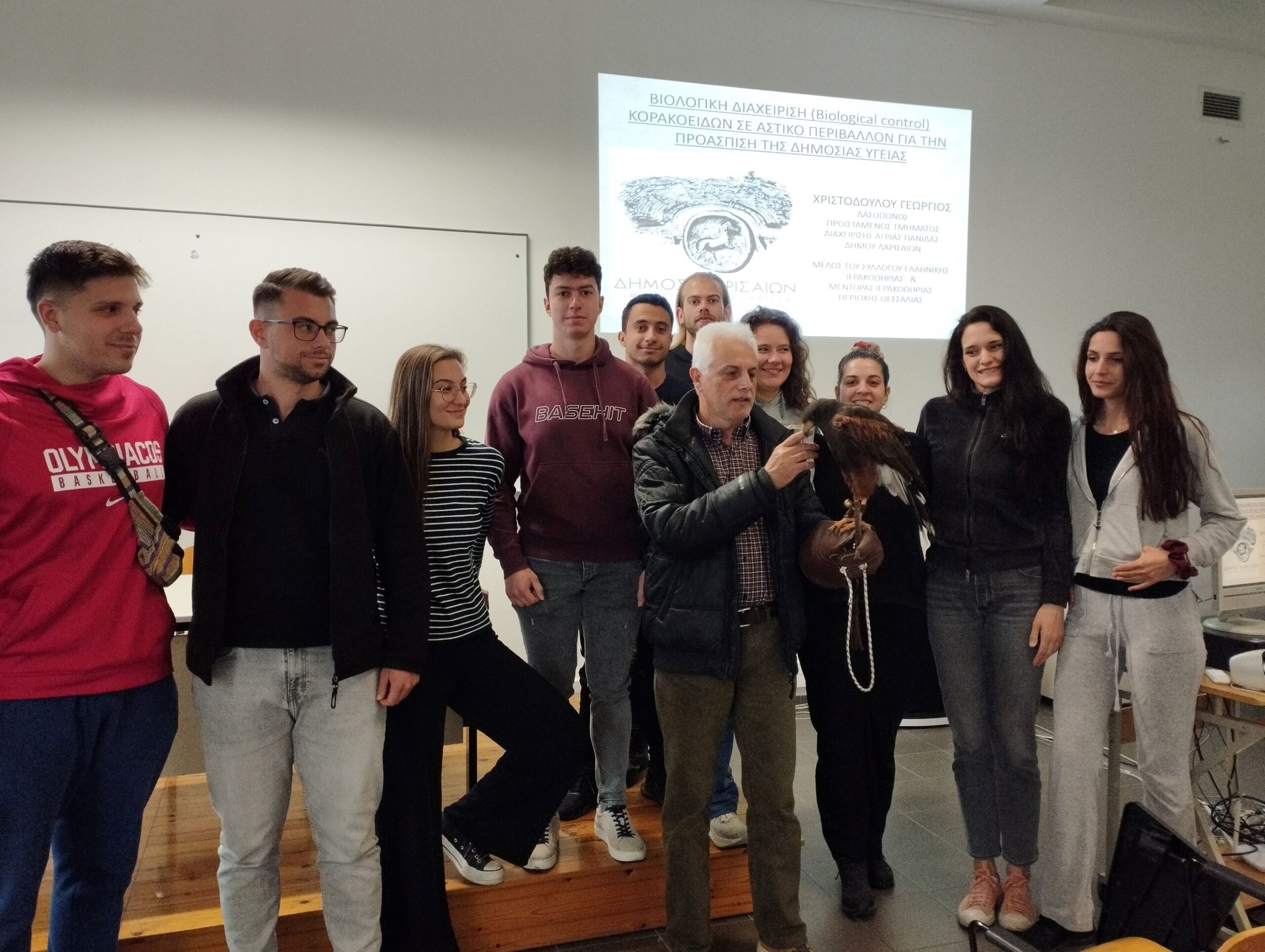 Το πρωτοποριακό πρόγραμμα του Δήμου Λαρισαίων για τη βιολογική διαχείριση των κορακοειδών σε αστικό περιβάλλον, με τη χρήση γερακιών, παρουσιάστηκε στο πλαίσιο εκπαιδευτικής εκδήλωσης του Τμήματος Κτηνιατρικής του Πανεπιστημίου Θεσσαλίας, στην Καρδίτσα.