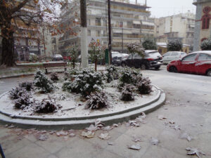 Σε λευκό κλοιό ο Νομός Καρδίτσας – Χιόνια και στα πεδινά και στο κέντρο της πόλης