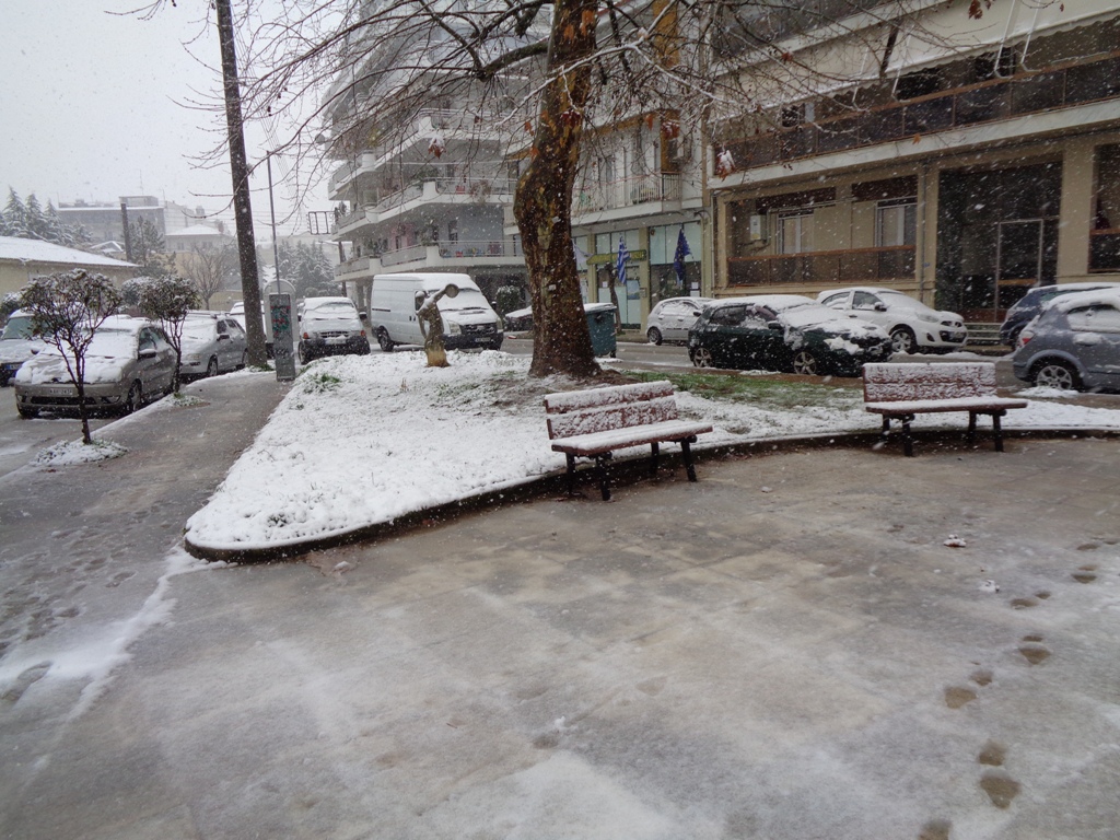 Χιονοπτώσεις και στα πεδινά, ακόμα και στο κέντρο της πόλης της Καρδίτσας, έφερε το πρωί της Τετάρτης 9 Μαρτίου το νέο κύμα κακοκαιρίας με την ονομασία «Φίλιππος».