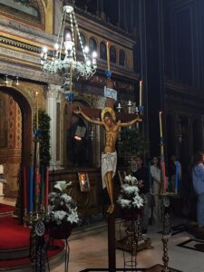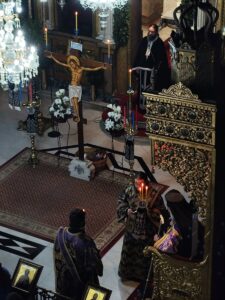 Στην ιερά ακολουθία, εκπρόσωποι των τοπικών αρχών αλλά και πλήθος πιστών προσήλθαν με ευλάβεια, να παρακολουθούν την πορεία του Θείου δράματος συμμετέχοντας προσευχητικά και βιώνοντας τα σωτήρια γεγονότα των Παθών του Κυρίου μέσα από τη λειτουργική ζωή της Εκκλησίας.