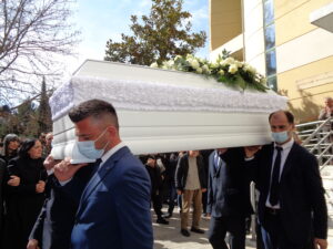 Οι στιγμές όταν έφθασε το λευκό φέρετρο και όταν αποχώρησε λύγισαν τους πάντες, ενώ ακόμα πιο σπαρακτικές ήταν οι σκηνές όταν εκφωνήθηκαν οι επικήδειοι.
