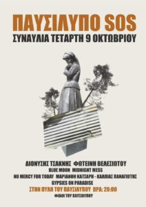 Την Τετάρτη 9/10, και ώρα 20:00, οι Φίλοι του Παυσιλύπου συνδιοργανώνουν με τον Σύλλογο Δασολόγων και το παράρτημα της Ε. Γ.Ε. Καρδίτσας, συναυλία , με ελεύθερη είσοδο, στην πλατεία Πλαστήρα, όπου θα συμμετέχουν ο Διονύσης Τσακνής, η Φωτεινή Βελεσιώτου και τα τοπικά συγκρότημα Blue Moon, no Mercy for Today, Μαριάνθη Κατσάρη-Καλπίας Παναγιώτης, Gypsies on Paradise, συμβάλλοντας στην ανάδειξη των προβλημάτων που δημιουργεί η δρομολογούμενη ανάπλαση και εντείνοντας την προσπάθεια αποτροπής των απαράδεκτων σχεδιαζόμενων παρεμβάσεων.