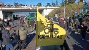 Με πίστη στο δίκιο του αγώνα μας, συνεχίζουμε, τόνισε ο Κώστας Τζέλλας, πρόεδρος της Ενωτικής Ομοσπονδίας Αγροτικών Συλλόγων Νομού Καρδίτσας, από το μπλόκο Ε65, με τους βιοπαλαιστές αγροτοκτηνοτρόφους να φωνάζουν δυνατά το σύνθημα, «στα μπλόκα, στα μπλόκα της αγροτιάς, θα σπάσει της κυβέρνησης ο τσαμπουκάς».
