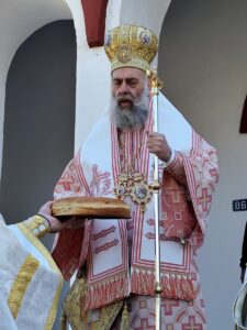 Ιδιαίτερη θέση στην ομιλία του κατείχε το πρόσωπο του Αγίου Σεραφείμ, τον οποίο παρουσίασε ως ζωντανό και διαχρονικό πρότυπο ταπείνωσης. Αναφέρθηκε στη ζωή του από τα νεανικά του χρόνια στον τόπο καταγωγής του, στην πορεία του μέσα στην Εκκλησία μέχρι την ανάδειξή του στο αρχιεπισκοπικό αξίωμα, αλλά και στο μαρτύριό του, τονίζοντας ότι σε όλη του τη ζωή διακρίθηκε για τη βαθιά του ταπείνωση. Αυτή η ταπείνωση, όπως σημείωσε, του έδινε τη δυνατότητα να χωρά όλους τους ανθρώπους στην καρδιά του, να τους αγκαλιάζει και να τους δέχεται χωρίς διάκριση.