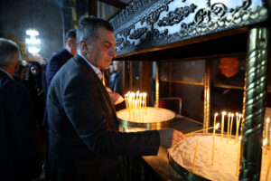 Μετά το πέρας της Ακολουθίας, ο κ. Κουρέτας αντάλλαξε ευχές με τους πολίτες της Καρδίτσας, τονίζοντας το βαθύτερο νόημα της ημέρας: