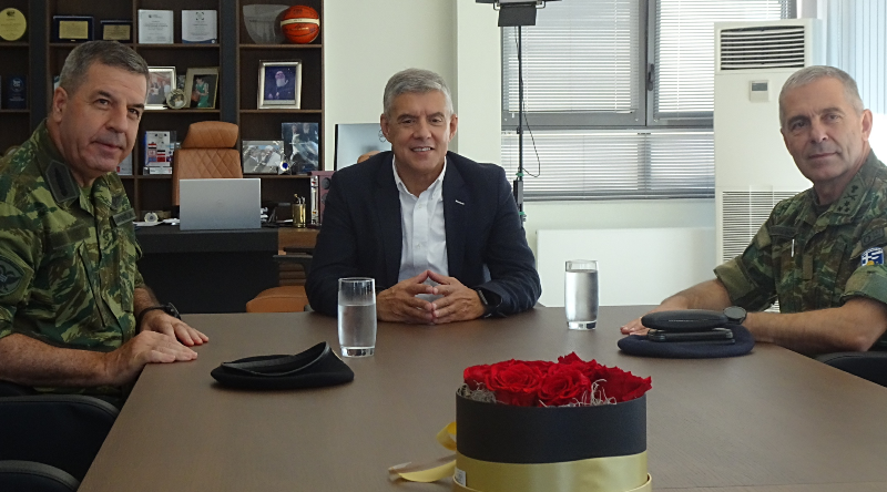 Η υποδειγματική συνεργασία μεταξύ της Περιφέρειας Θεσσαλίας και της 1ης Στρατιάς, που οδηγεί σε έργα για την ενεργειακή αναβάθμιση κτιριακών εγκαταστάσεων και την ενίσχυση του επιχειρησιακού και κοινωνικού ρόλου του στρατού στην πρόληψη και αντιμετώπιση έκτακτων καταστάσεων, επιβεβαιώθηκε στη συνάντηση που είχε σήμερα ο Περιφερειάρχης Κώστας Αγοραστός με τον Αρχηγό του Γενικού Επιτελείου Στρατού αντιστράτηγο Χαράλαμπο Λαλούση, παρουσία του Αρχηγού της 1ης Στρατιάς αντιστράτηγου Άγγελου Χουδελούδη.