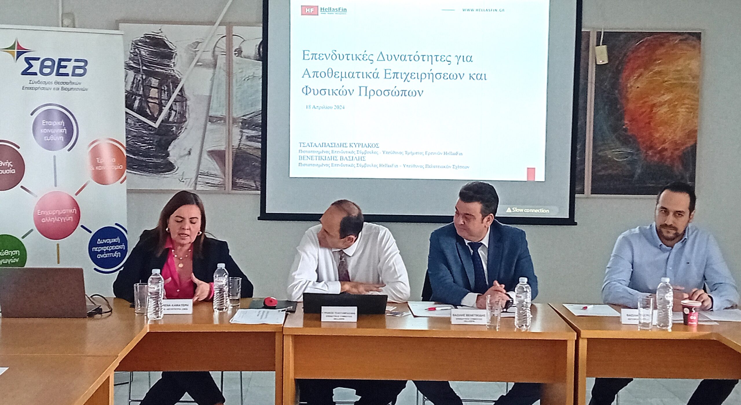 Ο Σύνδεσμος Θεσσαλικών Επιχειρήσεων και Βιομηχανιών πραγματοποίησε συνάντηση εργασίας με τις επιχειρήσεις – μέλη του με θέμα: «Επενδυτικές Δυνατότητες για Αποθεματικά Επιχειρήσεων και Φυσικά Πρόσωπα», σε συνεργασία με την εταιρεία Συμβούλων και Διαχείρισης Περιουσίας Hellas Fin Α.Ε.Π.Ε.Υ. , την Πέμπτη 18/14/2024 στις εγκαταστάσεις του στη Λάρισα.