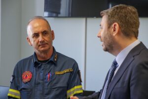 Ακολούθως κ. Ανδρουλάκης μετέβη και στο Κέντρο Πολιτικής Προστασίας της Περιφέρειας και ενημερώθηκε από τον υπεύθυνο Ηλία Λεοντάρη για τις επιχειρησιακές του δυνατότητες σε ότι αφορά την πρόληψη και τη διαχείριση φυσικών καταστροφών ενώ στη συνέχεια συναντήθηκε με τον Διοικητή της Περιφερειακής Διοίκησης Πυροσβεστικής Υπηρεσίας Θεσσαλίας, Αρχιπύραρχο Ιωάννη Αμανατίδη.