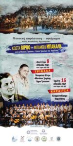 Τη σημασία της συμβολής του Δήμου Τρικκαίων σε μουσική εκδήλωση για τους Θεσσαλούς δημιουργούς του λαϊκούς μας τραγουδιού, Κώστα Βίρβο και Μπάμπη Μπακάλη, ανέδειξε ο αντιδήμαρχος Πολιτισμού Μιχάλης Λάππας. Σε συνέντευξη Τύπου με αντικείμενο την προώθηση σχετικής συναυλίας, ο κ. Λάππας αναφέρθηκε συνολικά στον μουσικό πλούτο των Τρικάλων, αλλά και στις μουσικές «στέγες», που έχει ήδη δημιουργήσει ο Δήμος Τρικκαίων για το λαϊκό τραγούδι (Μουσείο Τσιτσάνη, Σπίτι Τρικαλινών Καλλιτεχνών). Αναφέρθηκε, επίσης, στην πρωτοβουλία της Διεύθυνσης Δευτεροβάθμιας Εκπαίδευσης Τρικάλων, για την πραγματοποίηση δύο συναυλιών, σε Τρίκαλα και Καρδίτσα, τόπους καταγωγής των δύο δημιουργών. Η συνέντευξη παραχωρήθηκε στο γραφείο της Αντιπεριφερειάρχη Τρικάλων Χρύσας Ντιντή την Πέμπτη 28 Μαρτίου 2024 και οι συναυλίες θα δοθούν, στα μεν Τρίκαλα τη Δευτέρα 8 Απριλίου 2024 και ώρα 19:30 στο Πνευματικό Κέντρο του Δήμου Τρικκαίων «Αθανάσιος Τριγώνης», στη δε Καρδίτσα, την Τρίτη 16 Απρίλιου 2024