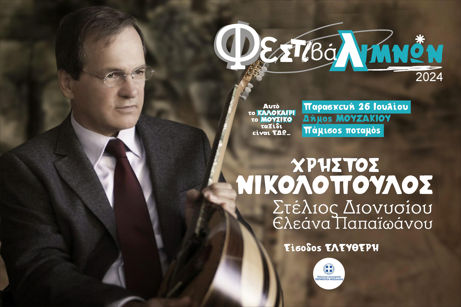 Σε συνεργασία με το Δήμο Μουζακίου, την Παρασκευή 26 Ιουλίου ο Χρήστος Νικολόπουλος θα μας διασκεδάσει σε μια μοναδική συναυλία στο Μουζάκι.
