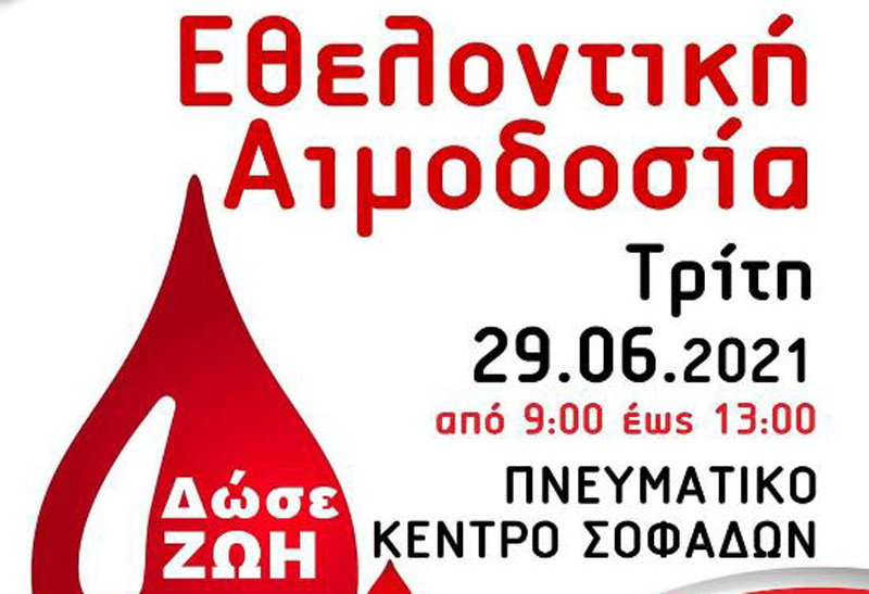 Εθελοντική Αιμοδοσία την Τρίτη 14/9 στους Σοφάδες