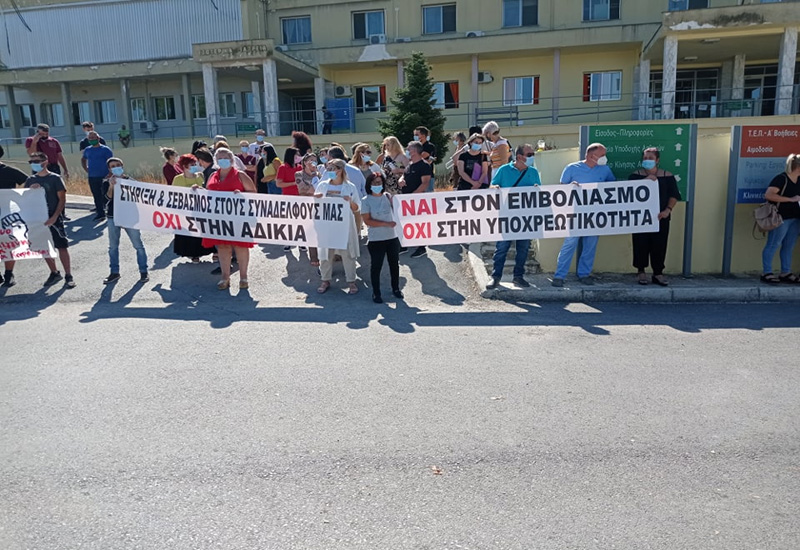 Συνεχίστηκαν οι κινητοποιήσεις και την Πέμπτη, στην πύλη του Νοσοκομείου μας, ενάντια στην Υποχρεωτικότητα, συμμετέχοντας στην 5ωρη στάση εργασίας, που είχε προκηρύξει η ΠΟΕΔΗΝ. Δυστυχώς, ήδη επιδόθηκαν σε 53 συναδέλφους μας φύλλα Αναστολής Καθηκόντων. Έχουν βγει εκτός προγραμμάτων υπηρεσίας οι ανεμβολίαστοι συνάδελφοί μας. Είναι άδικο, για τους συναδέλφους μας, που μέχρι χθες ήταν ακίνδυνοι και …