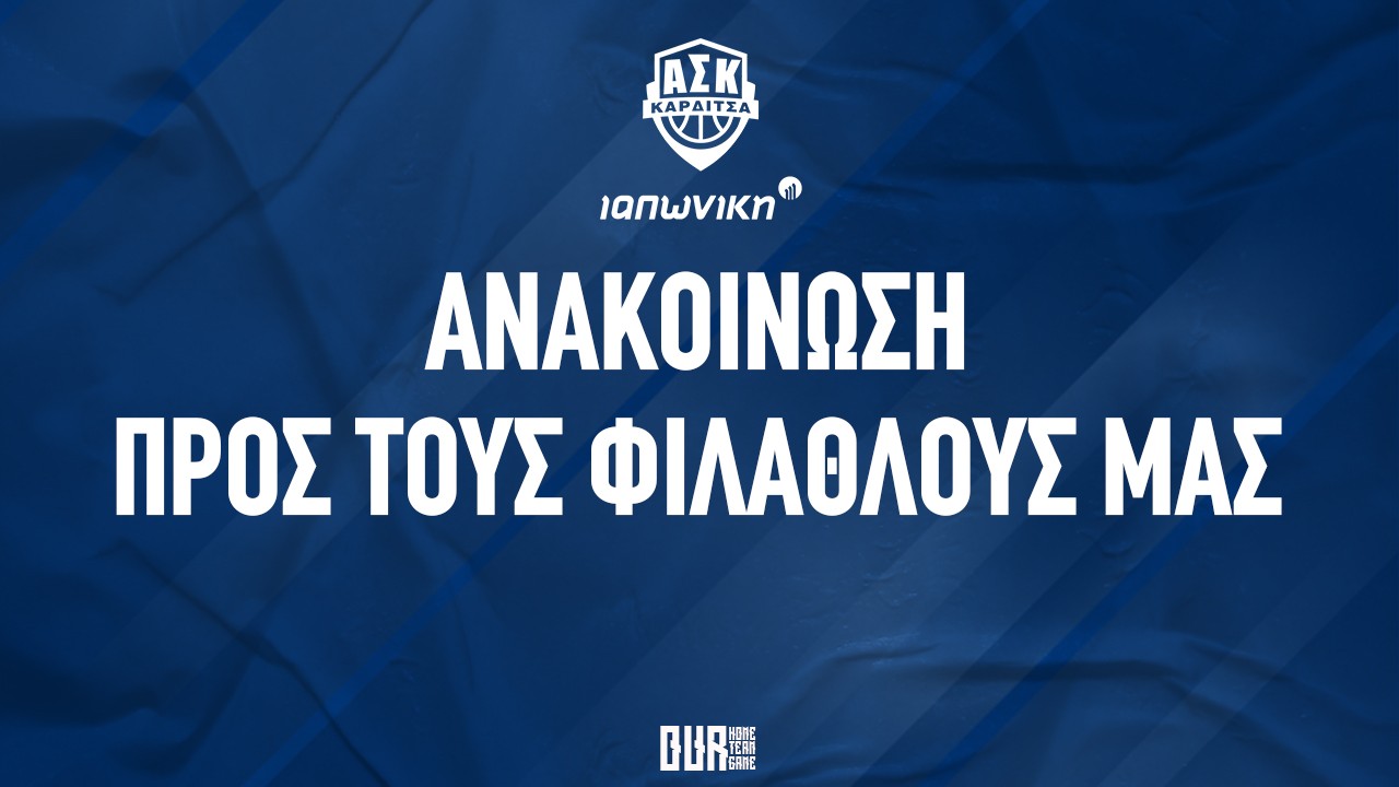 Ο Α.Σ. Καρδίτσας ΙΑΠΩΝΙΚΗ ανακοινώνει πως, για τον πολύ σημαντικό εντός έδρας αγώνα με αντίπαλο τον ΠΑΟΚ mateco,την Κυριακή 24 Μαρτίου στις8.15 μ.μ., στο Κλειστό Γυμναστήριο «Γιάννης Μπουρούσης» ξεκινά τη διαδικασία προπώλησης των εισιτηρίων. Για την αναμέτρηση της 22ης αγωνιστικής στο πρωτάθλημα της Stoiximan Basket League, η διάθεση των εισιτηρίων θα γίνεται ΑΠΟΚΛΕΙΣΤΙΚΑ με τη …