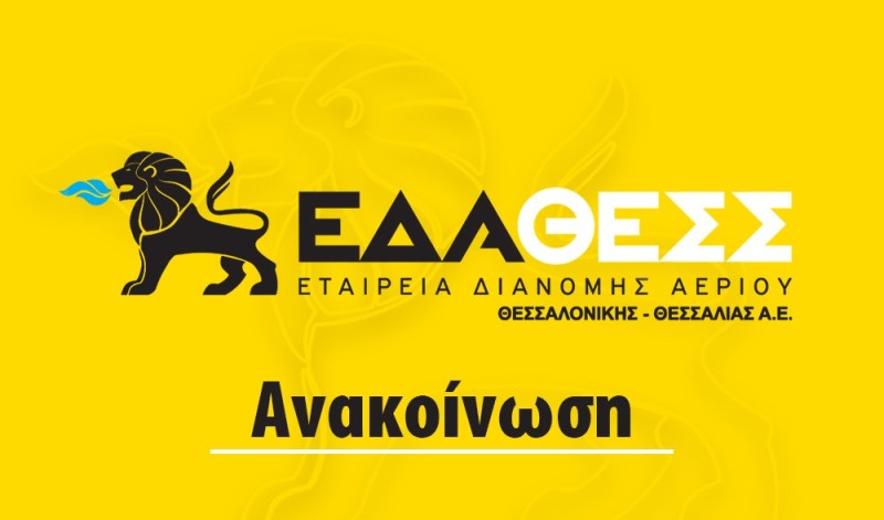 Σας ενημερώνουμε ότι το τεχνικό προσωπικό της ΕΔΑ ΘΕΣΣ, επισκέπτεται το χώρο των καταναλωτών μόνο μετά από προγραμματισμένο ραντεβού, κατόπιν επιβεβαίωσης και αποδοχής του αντισυμβαλλόμενου. Συστήνεται στους πολίτες να ζητούν απαραιτήτως την επαγγελματική ταυτότητα του εισερχομένου για την εκτέλεση εργασιών ή μετρήσεων φυσικού αερίου, η οποία αποδεικνύει την επαγγελματική ιδιότητα του τεχνικού και να επιτρέπουν …