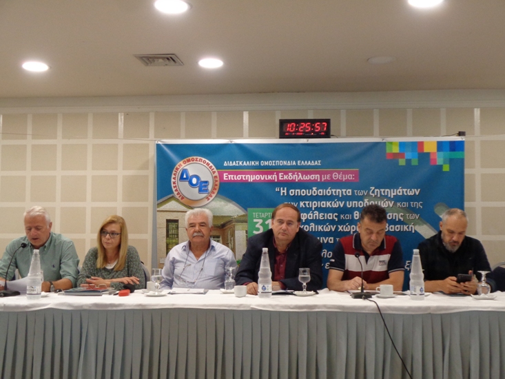 Το Δ.Σ. της Δ.Ο.Ε. σε συνεργασία με τον Σύλλογο Εκπαιδευτικών Π.Ε. Καρδίτσας και τον Δήμο Καρδίτσας,  διοργάνωσαν, το πρωί της Τετάρτης, σε κεντρικό ξενοδοχείο της πόλης, επιστημονική εκδήλωση με θέμα: «Η σπουδαιότητα των ζητημάτων των κτιριακών υποδομών και της ασφάλειας και θωράκισης των σχολικών χώρων ως βασική μέριμνα της πολιτείας. Ο ρόλος τους στην εκπαιδευτική …