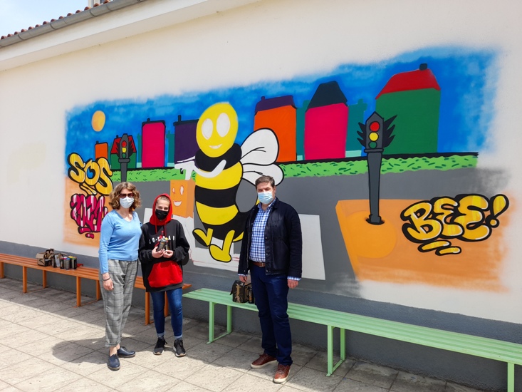 Τοιχογραφία με θέμα την μέλισσα στο 8ο Δημοτικό Σχολείο Καρδίτσας